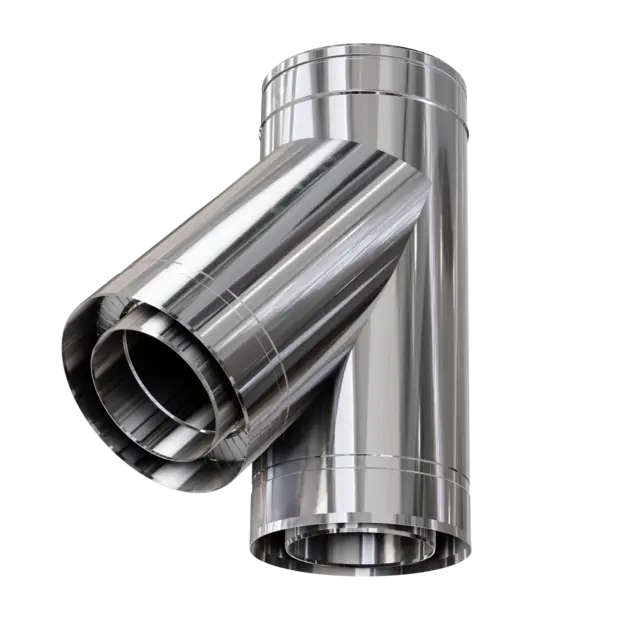 Трійник 45° двостінний для димоходу з нержавіючої сталі Versia-Lux. Призначений для з'єднання вертикальної частини димоходу та димоходу з нахилом 45°